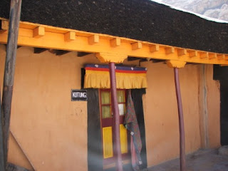 After a halt of around 20 mins., we move on towards Kye Monastery. Kye Monastery is the biggest in Spiti valley and is a religious training centre for Lamas. The walls of the monastery are covered by paintings and murals. It also has a collection of ancient murals and books of high aesthetic value and it enshrines Buddha images & idols in the Dhyana position. It has three floors, one of the rooms called Tangyur, is painted with murals. The Assembly Hall and the monks' cells are on the ground floor. Unfortunately we are prohibited from taking photographs of the Hall and the rooms.